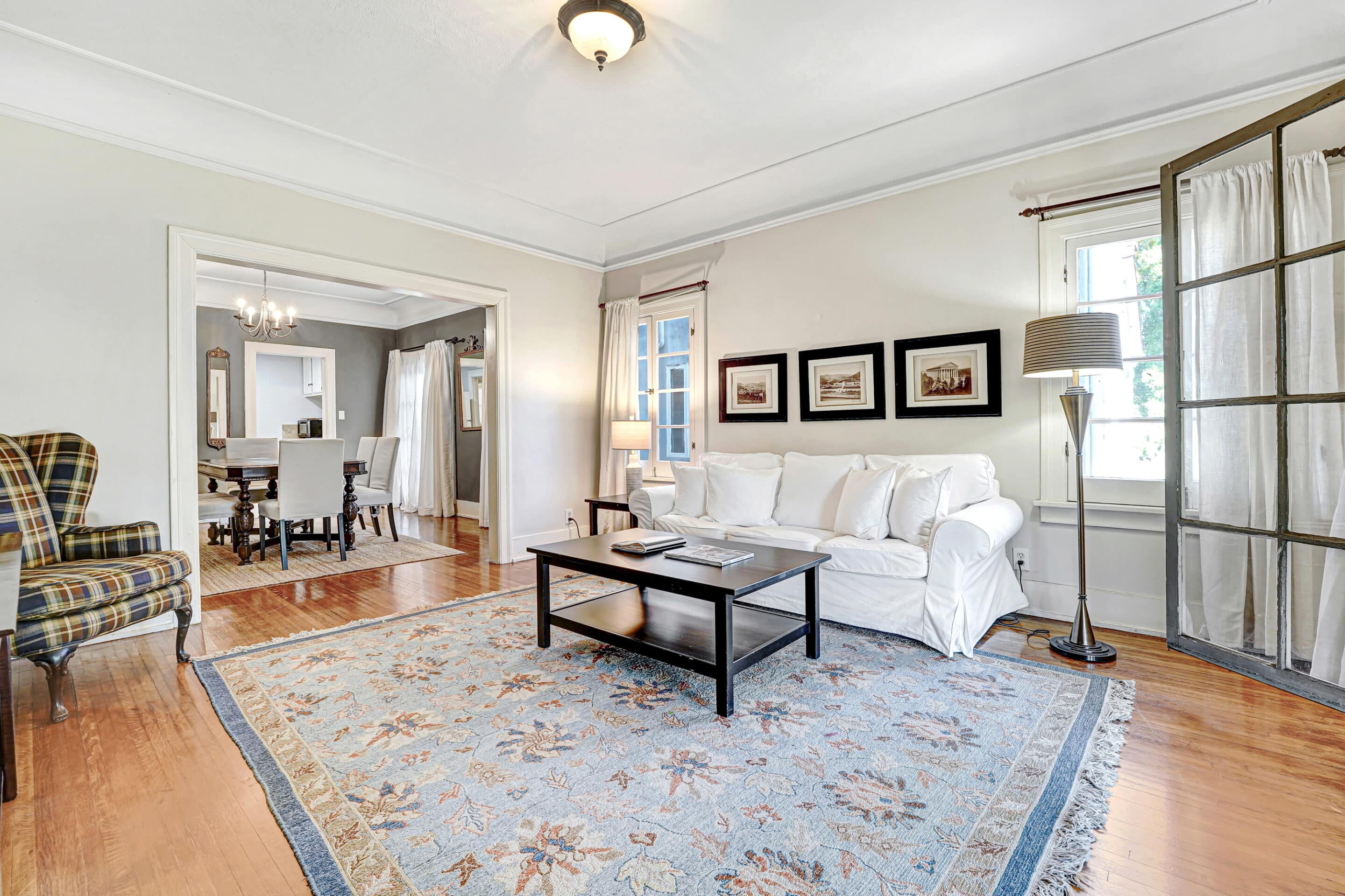 The “feel” of a boutique hotel! Four fully furnished, private and spacious 1100 sq ft 1bedroom/1bath apartments within a charming 1920’s fourplex, located in the quaint and exclusive neighborhood of Larchmont Village / Hancock Park! Step out your door into the picturesque, historic neighborhood known for its wide manicured, tree lined sidewalks with original street posts and grand “Old Hollywood” estates- just steps to Larchmont Village, 1/2 block to Paramount Studios! Named after Charles Bronson, this charming 1st floor 1Bedroom apartment offers the charm of yesterday + creature comforts of today! Large French windows, adorned with bougainvillea, allow for ample natural light in the formal living and dining rooms. Spacious walk- in closet in the bedroom + centralized A/C+ laundry room with en suite washer-dryer+ private 1 car garage with remote. Stay in one of L.A.’s most central & exclusive neighborhoods, near some of the best attractions in Los Angeles!
